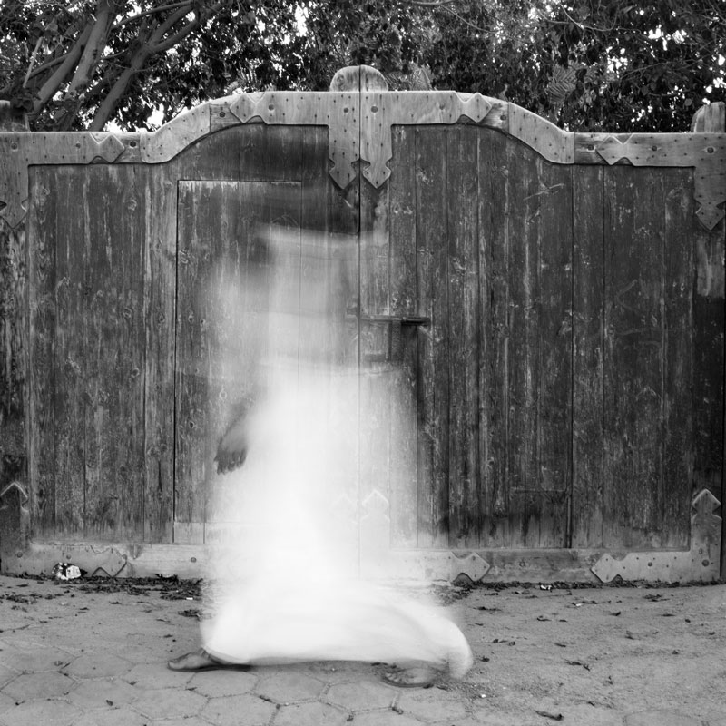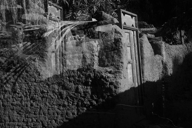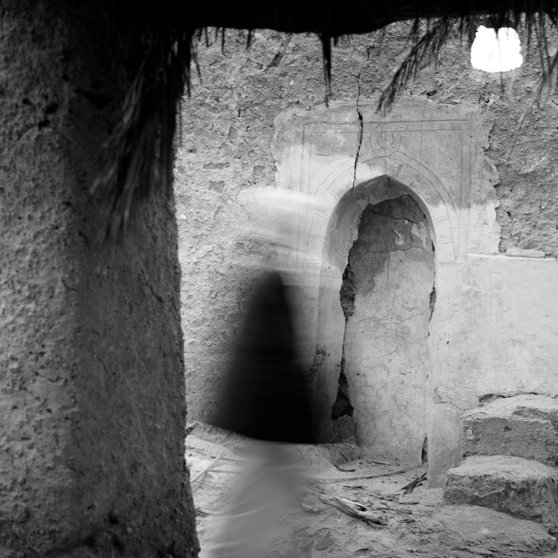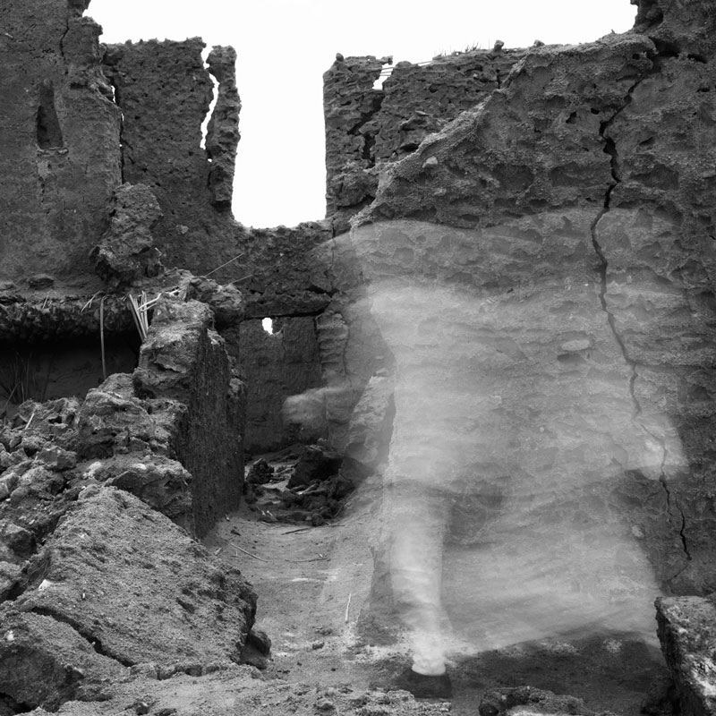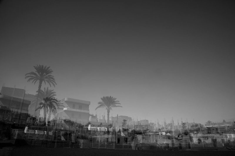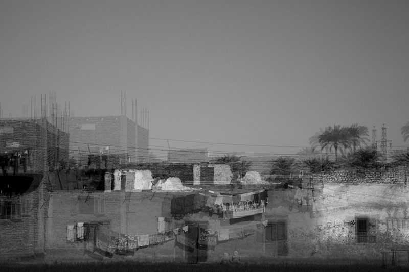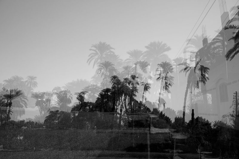 of black and white photographs, Hafez uses the technique