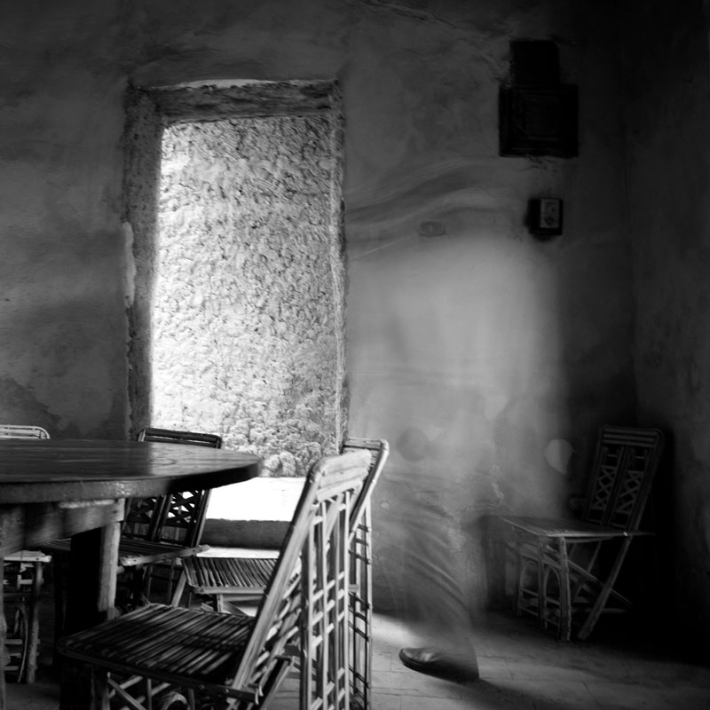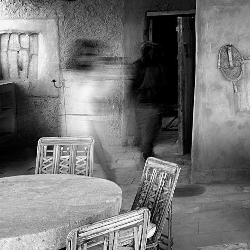 Hafez, the viewer is confronted with spaces, and shadows